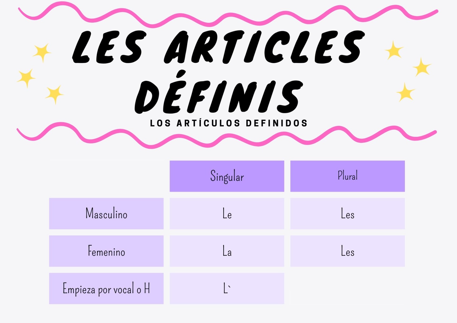 El articulo definido francés es lo mismo que nuestro determinante articulo definido el, la, los, las, y concuerdan en género y número con el nombre al que acompaña.